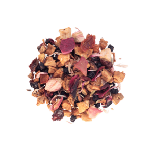 Manzana, ruibarbo, hibisco, sáuco, rosa mosqueta, pétalos de aciano y aromatizante natural.